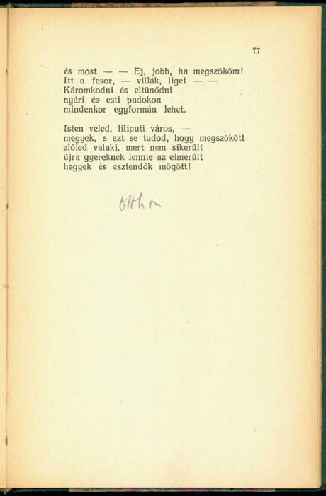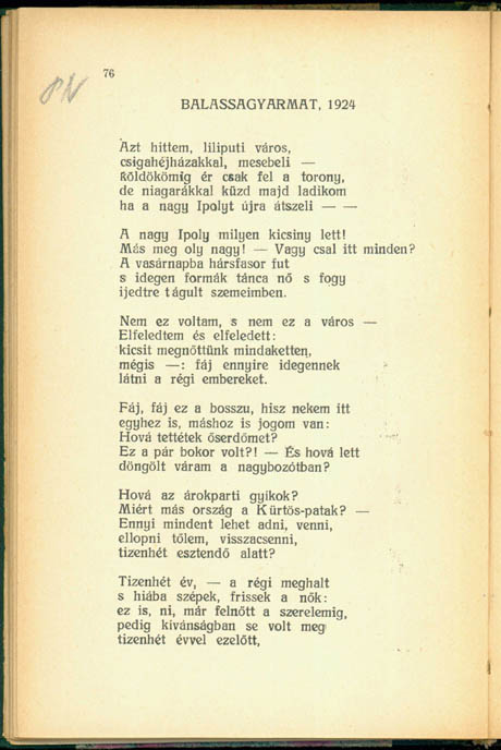 Szabó Lőrinc: Fény, fény fény, Versek, Kultura R.-T. kiadása, Budapest, 1926 [1925], 76–77. p. Szerzői példány. Magántulajdon. A cím mellett a Pesti Napló-közlésre utaló autográf jegyzet, a 77. oldalon a vers keletkezésére.