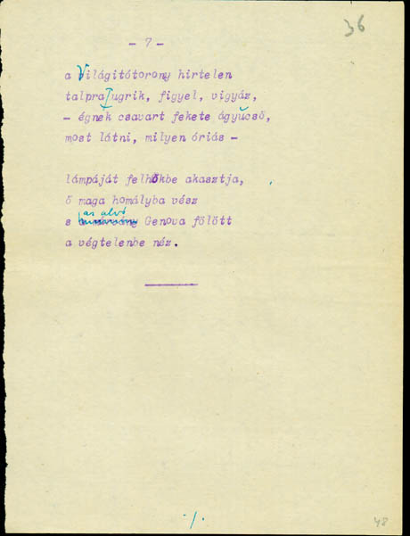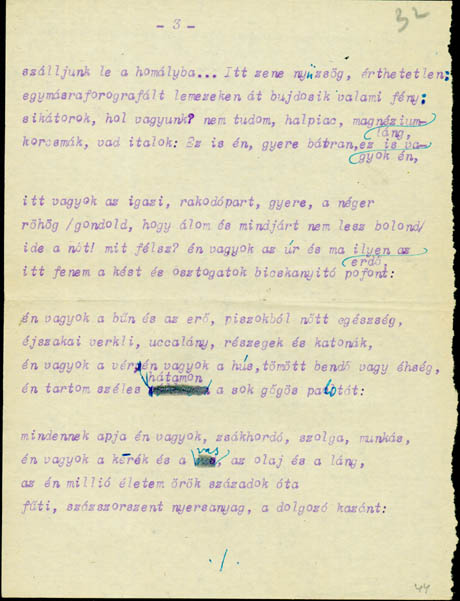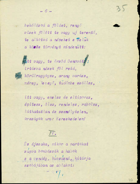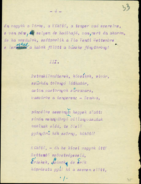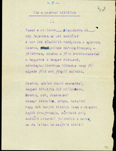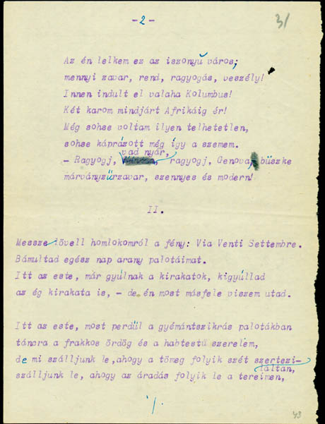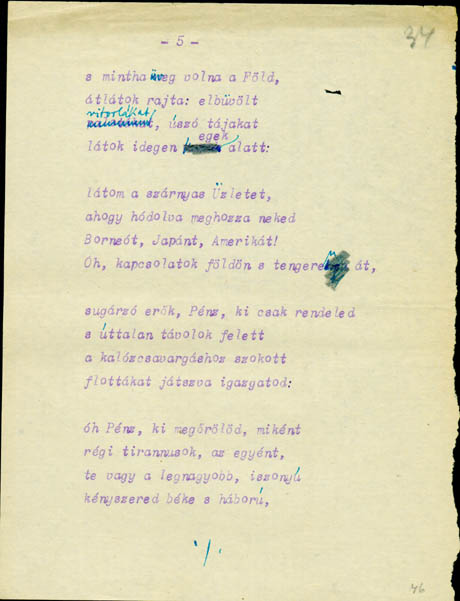Gépirat autográf javításokkal az 1934-es Válogatott Versei nyomdai