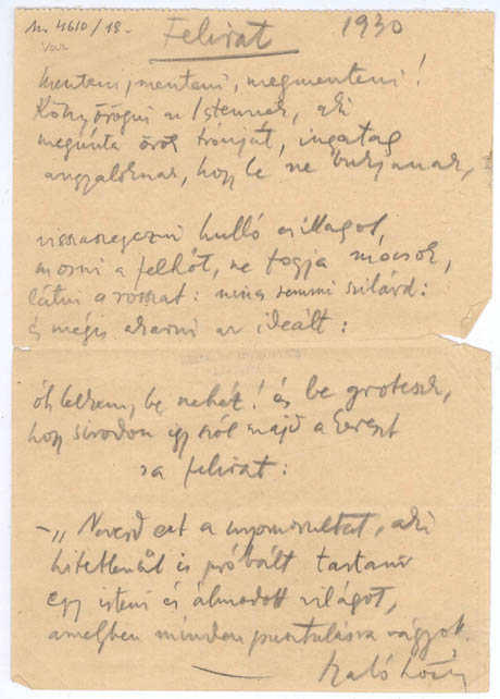 Vékes Ödönné Korzáti Erzsébet hagyatékában. A lap tetején a datálás: 1930; a lap