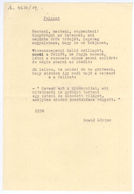 gépirat másod- és harmadpéldánya. Az Ms 4610/18. jelzetű kéziratról készült