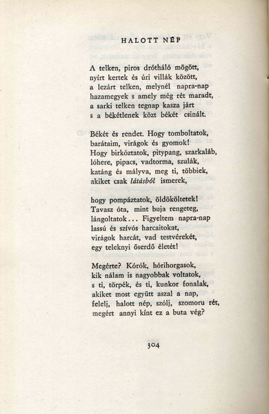 Szabó Lőrinc Válogatott versei 1922–1956, Magvető Könyvkiadó, Budapest, 1956, 304–305. p. Szövege megegyezik az Összes versei 1943-as kiadásában közölttel.
