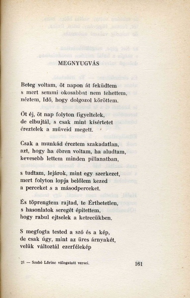 Szabó Lőrinc Válogatott versei, Singer és Wolfner Irodalmi Intézet R. T. kiadása, Budapest, 1940, 142–143. p.